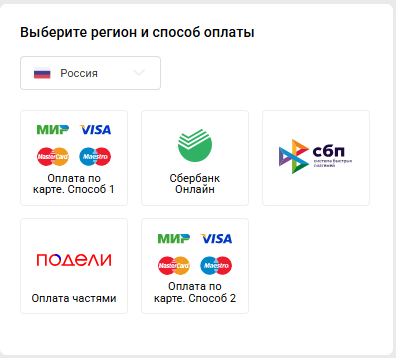• СБП (для РФ)